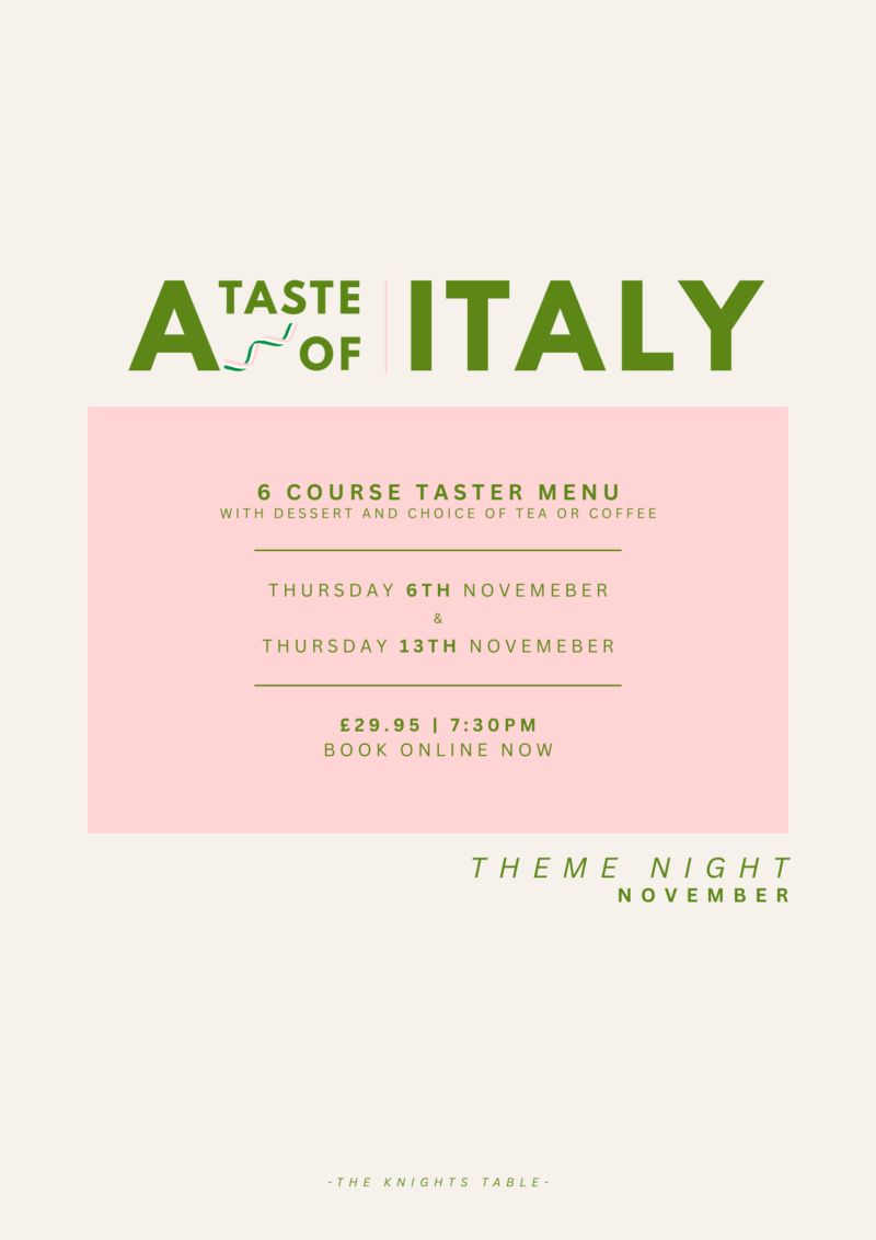 Details for our November Theme Night’s are HERE, as we bring the flavours of Italy to The Knights Table!